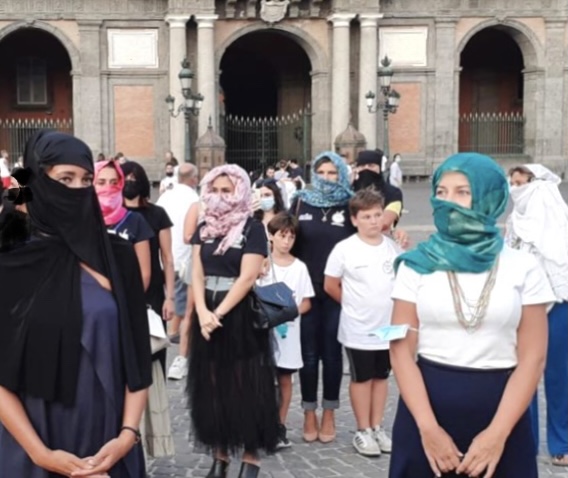 Napoli. Grande eco per la manifestazione #iononmicoprogliocchi, che si è svolta a Piazza del Plebiscito mirata a sollecitare l’attenzione sulla tragedia dell’Afganistan rioccupato dai talebani, che ha riscosso una notevole adesione.