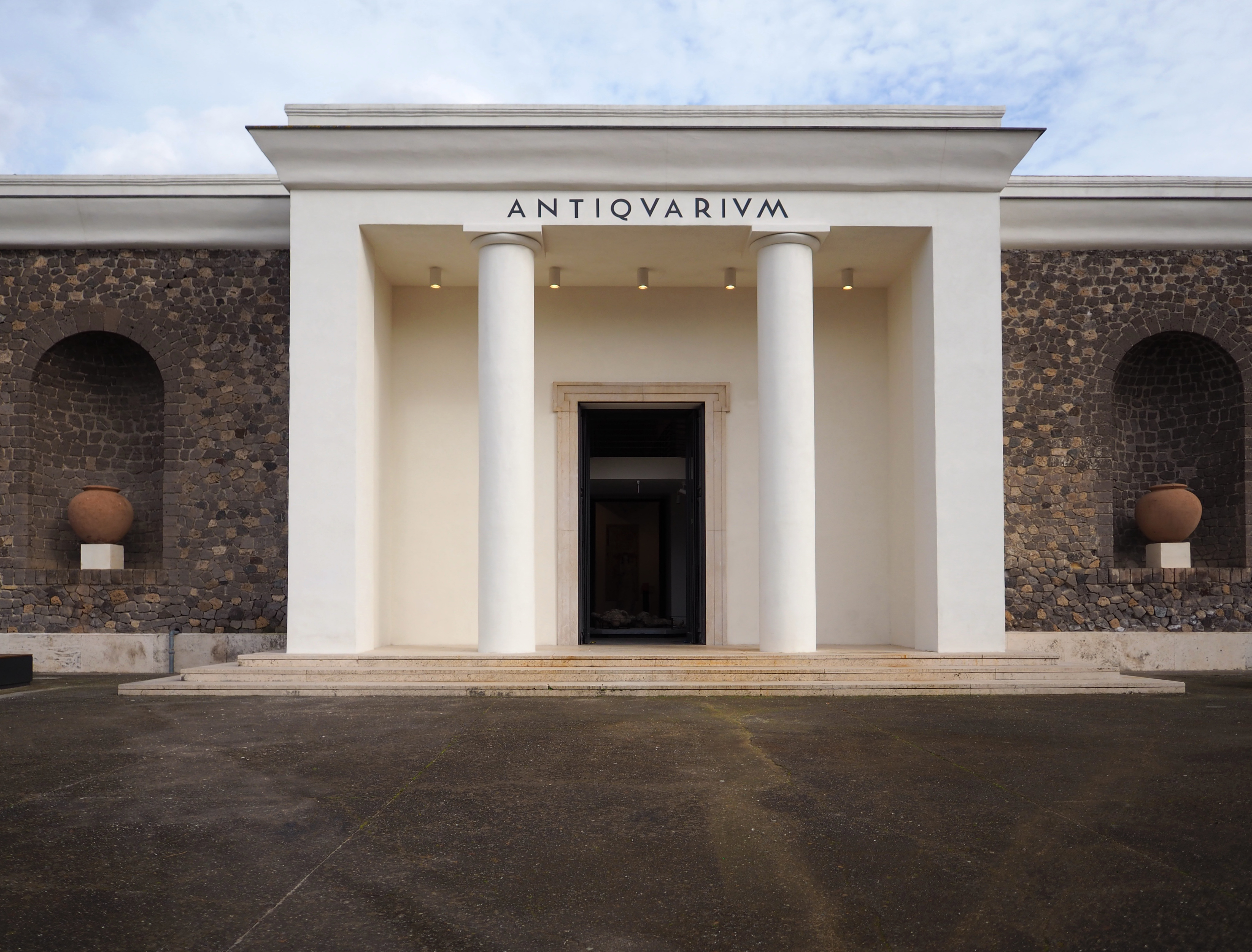 Oggi all’edificio si accede dal basso, attraversando un grande portale realizzato in pietra lavica che è stato sormontato da un “lettering”, “ANTIQUARIUM”, realizzato in ferro battuto ad imitare un’insegna “anni cinquanta” e che conduce il visitatore al Museo lungo alcune rampe arricchite da una grafica blu lavagna. Una “galleria continua a doppia altezza” e una “galleria continua ad altezza contenuta”, si sviluppano lungo le 11 sale allestite, poeticamente illuminate da luce naturale per la riapertura dei vecchi lucernari.