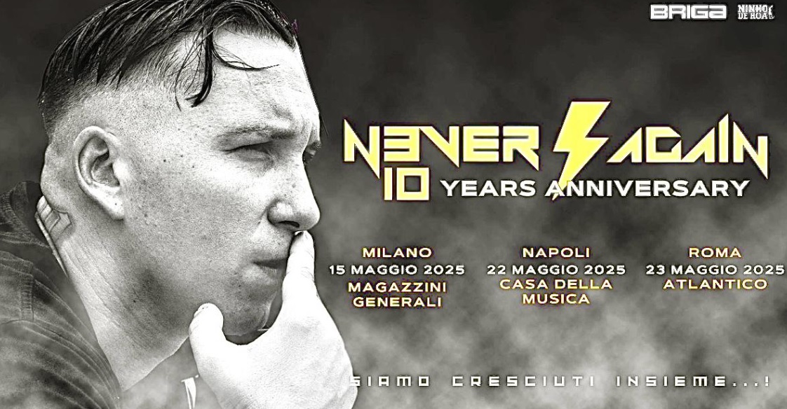 Napoli. Sarà nuovamente sul palco, Briga che torna live in tre concerti speciali dedicati ai 10 anni di “Never Again”. L’album pubblicato nel maggio del 2015, certificato platino dalla FIMI GFK a meno di un mese dall’uscita, ha segnato la sua carriera e conquistato migliaia di fan. Con milioni di streaming su Spotify, il disco ha consacrato il cantautore e rapper romano come “uno degli artisti più autentici del panorama musicale italiano, capace di una scrittura senza filtri in grado di scandagliare senza stereotipi la società moderna”.