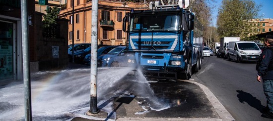 Sono dei mezzi speciali nati e concepiti per essere impiegati in ordine pubblico per la capacità di spruzzare migliaia di litri d’acqua a pressione; ora, invece, in accordo con le amministrazioni comunali che lo hanno richiesto, vengono utilizzati per sanificare le strade.
