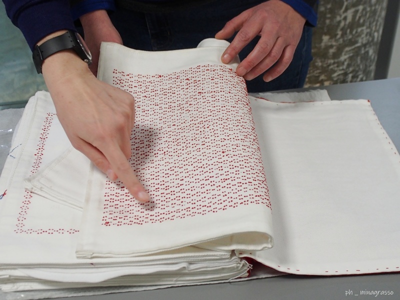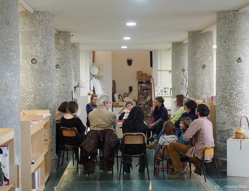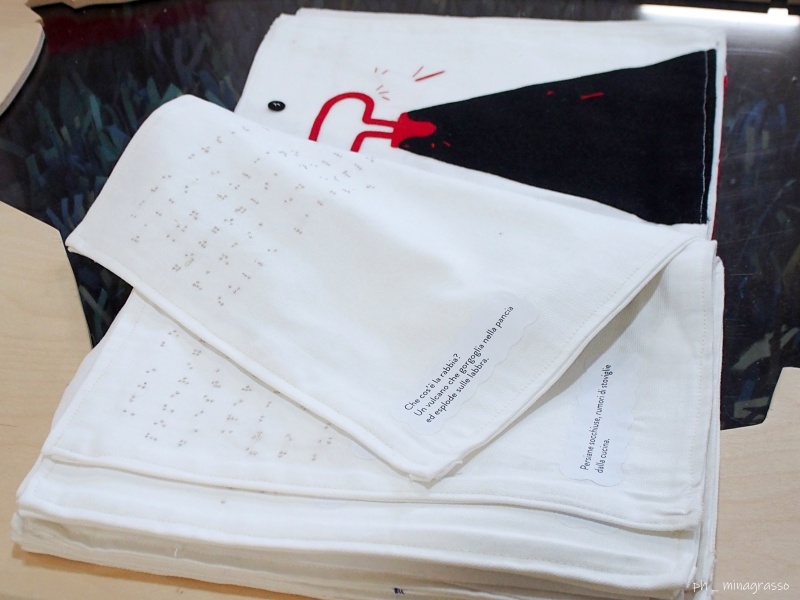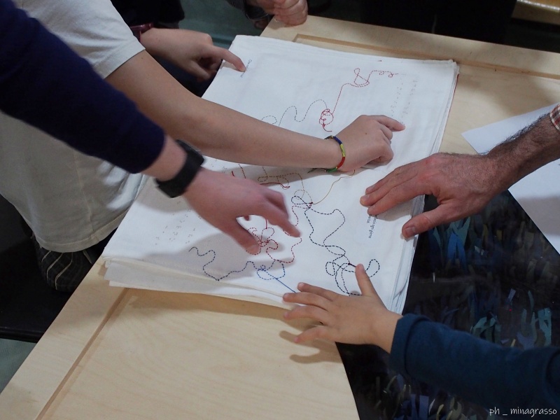 La lecture in Biblioteca ha ripercorso le pagine in tessuto ricamate rigorosamente a mano, dove domande complesse sulle cose dell’esistenza, hanno incontrato risposte semplici con rimandi concreti, proprio come farebbero i bambini.