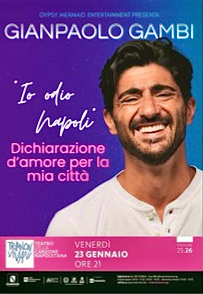 Stasera alle ore 21, al Trianon Viviani la stand up comedy di Gianpaolo Gambi in “Io odio Napoli. Dichiarazione d’amore per la mia città” colpevole – si fa per dire – di essere “troppo bella, piena di vita e soprattutto complessa”.