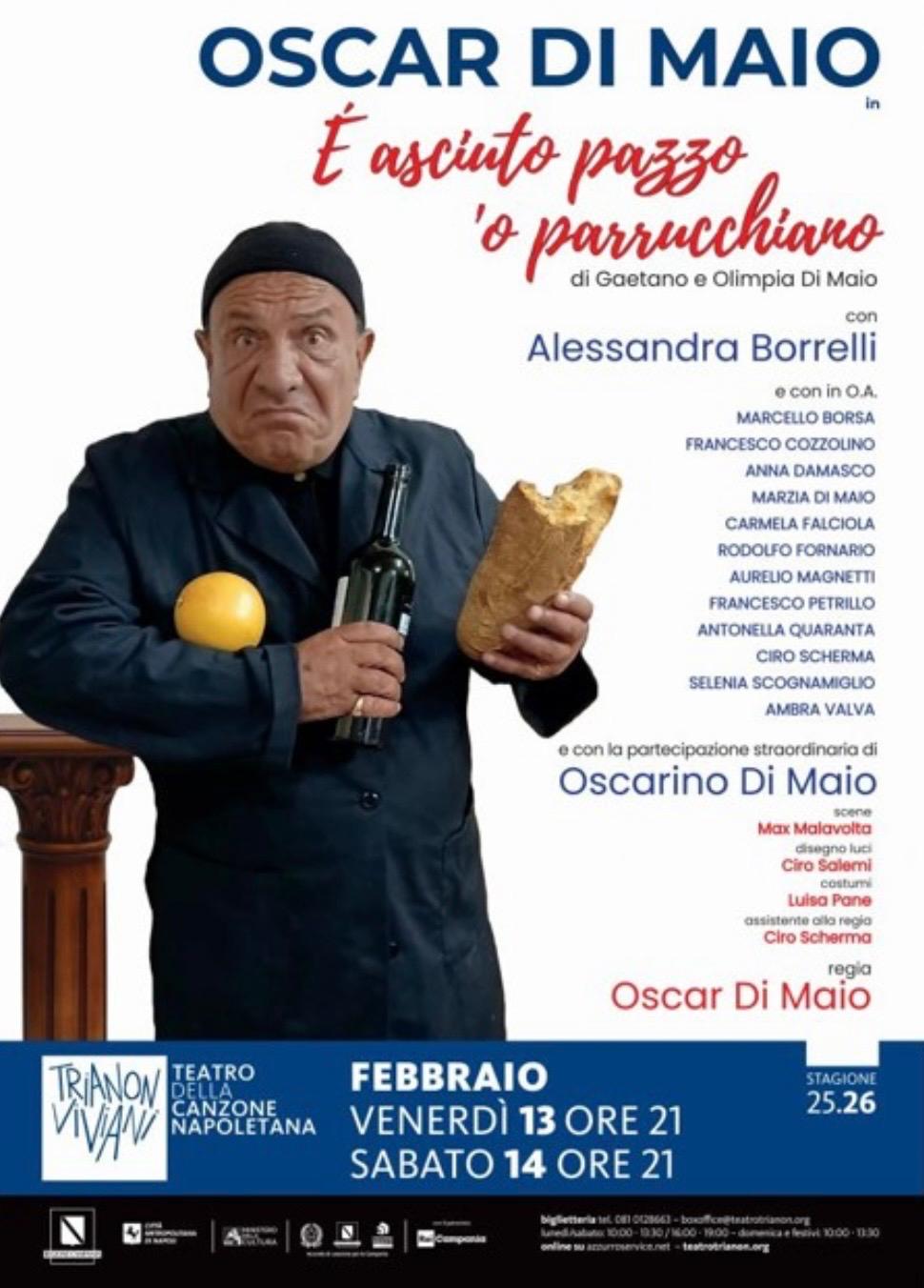 Oscar Di Maio con il grande teatro popolare comico familiare, è il protagonista e il regista di È asciuto pazzo ‘o parrucchiano, scritto dagli zii Gaetano e Olimpia.