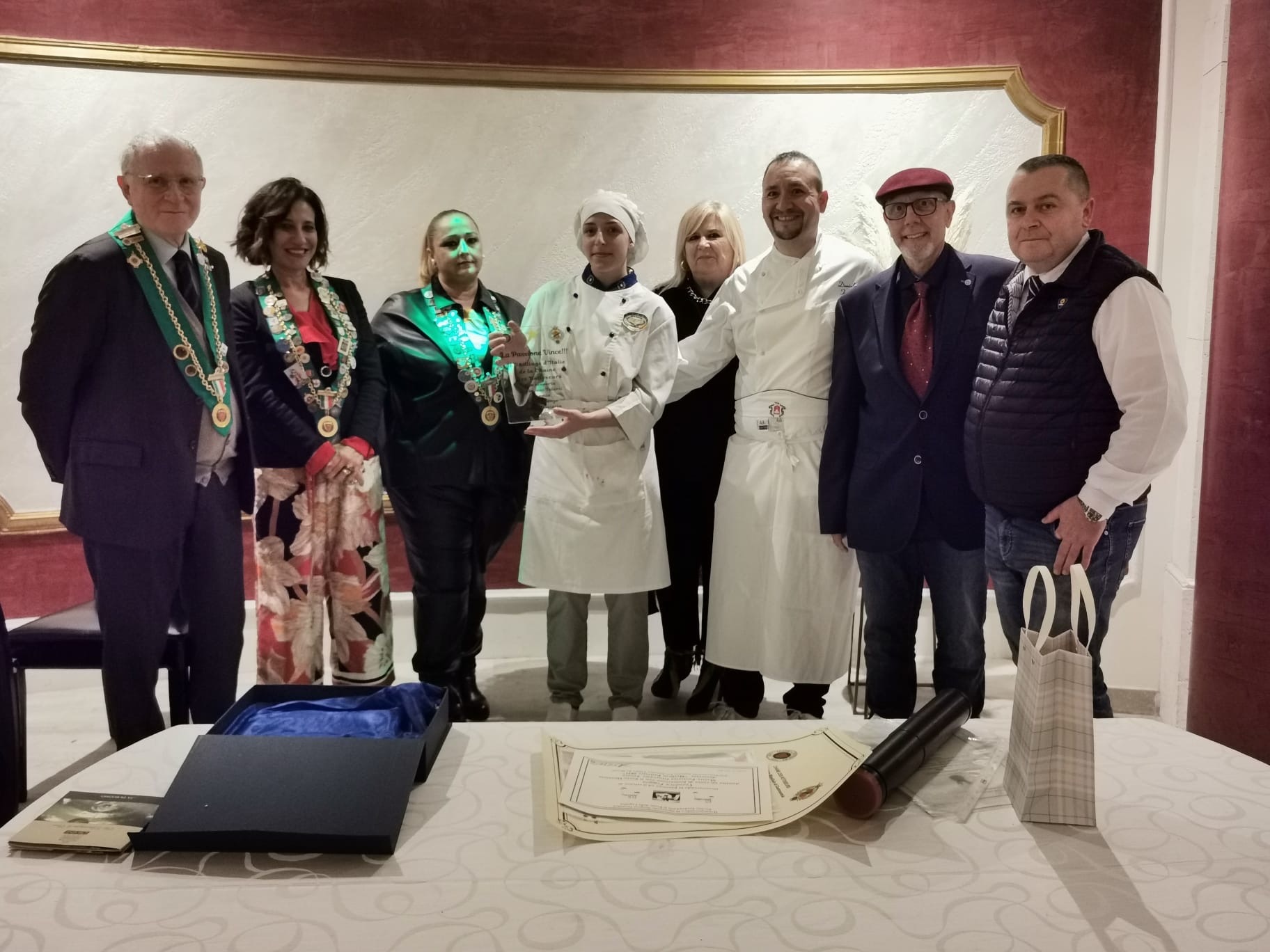 Nelle aziende uno dei principali problemi è quello di individuare i più meritevoli: riconoscere, valorizzare e premiare i giovani talenti del territorio, sono questi i tre obiettivi che consentono ad un’impresa di crescere. Per tale fine, nei giorni scorsi, presso ristorante “Antica Roma” di Arnara (FR) si è tenuto un evento per valorizzare un alunno meritevole della provincia di Frosinone di un Istituto di Istruzione Superiore del settore dell’enogastronomia. Una serata particolare in una location fantastica, per una premiazione speciale. L’evento è stato denominato: ”Alla scoperta di giovani talenti”, il premio mira appunto a valorizzare alunni che si distinguono nel percorso scolastico facendo anche emergere la passione verso il settore. Ad organizzare l’avvenimento è stata la Chaîne des Rôtisseurs, l’associazione mondiale di gastronomia, con il Bailliage d’Italie de la Chaîne des Rôtisseurs, capitanata dal Bailli Délégué Enrico Spalazzi e il Bailli Délégué Honoraire d’Italie, Conseiller Magistral Roberto Zanghi, in collaborazione con il Bailliage di Frosinone e la supervisione della Chargée de Missions d’Italie Anna Accalai. Per la prima edizione di questo evento nella Terra Ciociara è stato scelta un’alunna diplomata presso l’istituto IIS IPSSEOA di Ceccano, scuola da sempre all’avanguardia e attenta all’esaltazione dei requisiti professionali dei suoi allievi. In questo Istituto insegnano, quali docenti di cucina, la Bailli di Frosinone Maria Grazia Pisterzi (che predilige le ciambelline al vino o “mbriachelle” un must della cucina tradizionale ciociara: una ricetta semplice per un dolcetto gustoso!!) e Daniele Frioni Chef Rotisseur della Chaîne des Rôtisseurs, i quali hanno proposto un’alunna meritevole, Veronica Foggia V F Pasticceria, riscuotendo il consenso del consiglio di classe e dei docenti dell’IPSSEOA, fra cui Ornella Frattaroli e della Dirigente Scolastica Alessandra Nardoni e del vice Preside Domenico Crocca. Alla premiata è andata una targa e un diploma riportante questa motivazione: “per l’impegno e la passione verso il settore pasticceria portandola ad ottenere ottimi risultati nel percorso scolastico“, ed una borsa di studio offerta dal Bailliage Nazionale d’Italie della Chaîne. Inoltre Antonella Sotira, Presidente dell’associazione IUSdisputando e IUSgustando Simposi Giuridici, ha messo a disposizione di Veronica Foggia un ulteriore premio: un corso di formazione sulla pasticceria tenuto dal Maitre Patissier Giuseppe Amato del ristorante “La Pergola” dell’Hotel Hilton di Roma, decretato “ Meilleur Patissier 2021”. Fra gli obiettivi de la Chaîne des Rôtisseurs vi è quello di valorizzare i prodotti del territorio. Pertanto è stato individuato il ristorante “Antica Roma” di Arnara (FR) un ristorante classico italiano con un’ampia sala per meeting, cerimonie e feste private, quindi la location ideale per organizzare una conviviale. Per l’occasione è stato studiato e realizzato un menù spettacolare dallo Chef Rotisseur Daniele Frioni, coadiuvato dalla Lady Chef Rotisseur Rita Veglianti e dallo Chef residente Jacopo Scaccia, ex alunno dell’IIS IPSSEOA di Ceccano. I cinque vini in abbinamento ai piatti sono stati quelli dell’azienda Casale del Giglio, proposti dal sommelier Enrico Maria Concutelli coadiuvato dalla sommelier Chiara Petitti, inoltre sono state esaltate le eccellenze del territorio: l’olio del frantoio Orsini di Priverno e del frantoio Luigi Cocco di Ceccano; i prodotti della filiera bufalina del caseificio Nonna Pitta e del caseificio Ponte di Legno di Amaseno. La serata è stata un susseguirsi di emozioni, principalmente per la premianda Veronica Foggia, che è stata tenuta all’oscuro che la serata è stata realizzata in suo onore, come hanno voluto i suoi docenti, Pisterzi e Frioni, prendendo parte alla brigata per la preparazione della cena della Chaîne. Le degustazioni sono state illustrate, con dovizia di particolari, dai docenti: Giuseppe Nocca e Pietrino Venditti. Hanno partecipato alla cerimonia di premiazione i soci del Bailliage della delegazione di Frosinone, con la Bailli Maria Grazia Pisterzi e il Vice Argentier Liberato Altobelli; la Bailli del Bailliage Amphisya Calabria, Antonella Sotira Frangipane e il Bailli Honoraire del Bailliage Abruzzo Adriatico, Marco Forcella i quali hanno consegnato a Veronica la borsa di studio insieme ad una pergamena e ad una targa. Fra i tanti ospiti sono intervenuti alla serata, condotta da Dunia Mastrantuoni: Francesco De Angelis, Presidente del Consorzio Regionale del Lazio; il Sindaco del comune di Giuliano di Roma (FR), Adriano Lampazzi; i titolari del ristorante “Antica Roma”, Rossella Rossi e Domenico Roma e il Maestro di Cucina Sergio Ferrarini, responsabile MARR Academy.