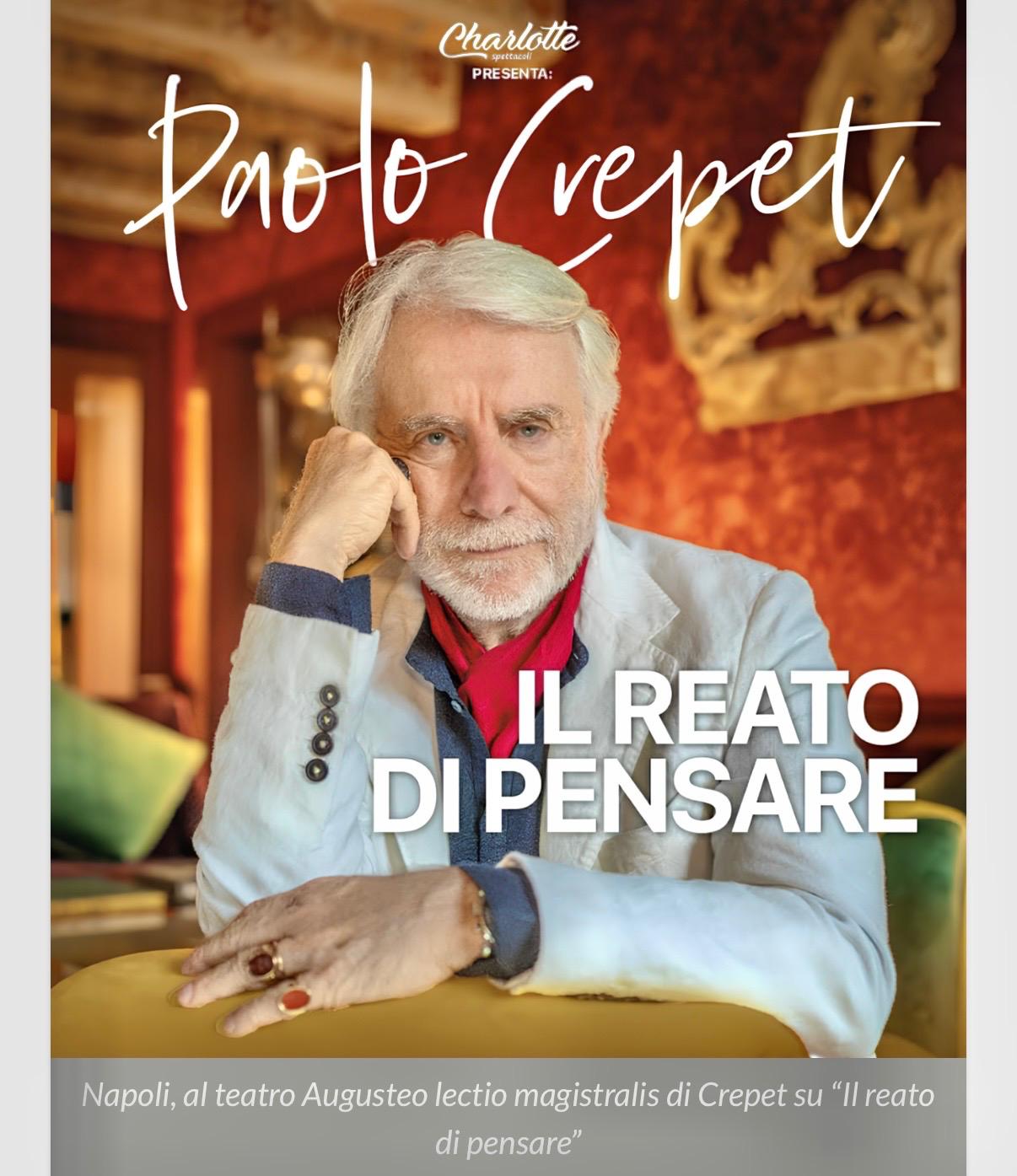 Napoli. “Chi pensa con la propria testa rischia di sembrare un criminale!” Quanto spazio resta oggi per un pensiero davvero libero? Da questa domanda parte la riflessione di Paolo Crepet. È una lectio magistralis quella che presenterà a un pubblico di qualità, attento e partecipe, lunedì 16 marzo alle ore 21 al Teatro Augusteo, salotto culturale della Città.
