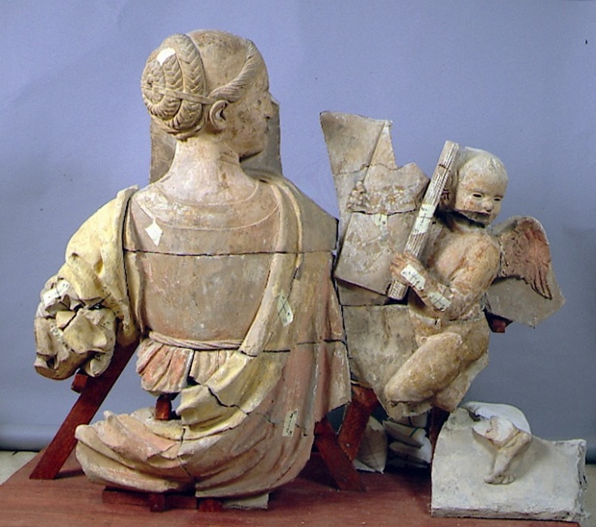Già agli inizi di questa lunga avventura si erano potute ritrovare la firma e la data incise nella terra ancora cruda (Do)minici/(opu)s/(MD)XVII, che avevano potuto confermare le notizie tramandate dalle fonti. L’intervento di pulitura ha poi reso leggibili le superfici e i segni di lavorazione delle terrecotte, facendo emergere l’azzurro e l’oro dei frammenti architettonici. Inoltre, il ritrovamento di piccole parti di colore originale, restituisce ai monumentali pezzi il senso della loro preziosità, mentre l’allestimento su fondi e basi dai toni chiari accompagna in maniera sobria e raffinata la lettura dell’opera, restituita nella sua complessità di insieme maestoso ma mutilo.