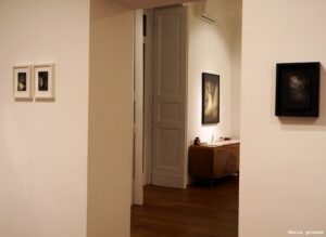 Nel volume scatti legati a sensazioni come quelle provate percependo temperature, oppure immagini di viaggio, di volti, e di nuovo sensazioni connesse al vuoto, al silenzio, all’assenza di musica. La gallerista Cristina Ferraiuolo ha voluto tuttavia, mostrare un lavoro più ampio, completo: l’allestimento si sviluppa sulle pareti della home gallery come in un’onda unica, un percorso senza interruzioni che mostra i diversi progetti di Dimitra Dede non solo quelli legati al dolore per la perdita della madre, ma anche sperimentazioni sui negativi, sulle carte, utilizzo del colore pittorico, foto legate ad altri viaggi, a luoghi. Un intenso viaggio dentro un mondo interiore, “un bel modo – anche se a volte può apparire scomodo – per dire “io“.